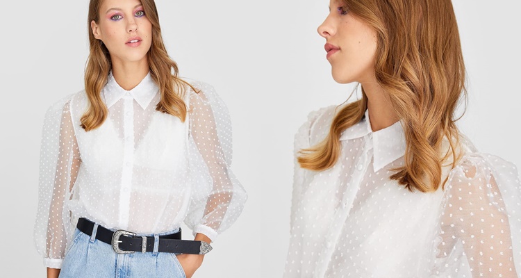 Elige tu camisa de mangas abullonadas en materiales sofisticados como el tul y la organza. Añade transparencias o lúcela en color negro si buscas un look de noche o elige una camisa de colores si quieres un look de día diferente.