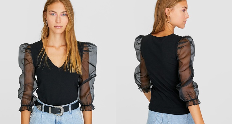 Esta temporada necesitas una camisa con mangas abullonadas. Están en todas las tiendas y en Stradivarius las tienes a muy buen precio. Esta tienda siempre apuesta fuerte por la ropa para salir de fiesta.