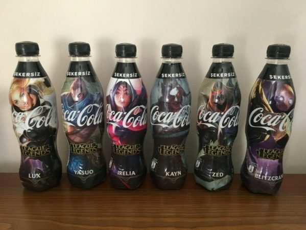 En Turquía se puso a la venta en los supermercados botellas de medio litro con la temática de League of Legends. Este último es un juego online multijugador que tiene muchos seguidores en todo el mundo.