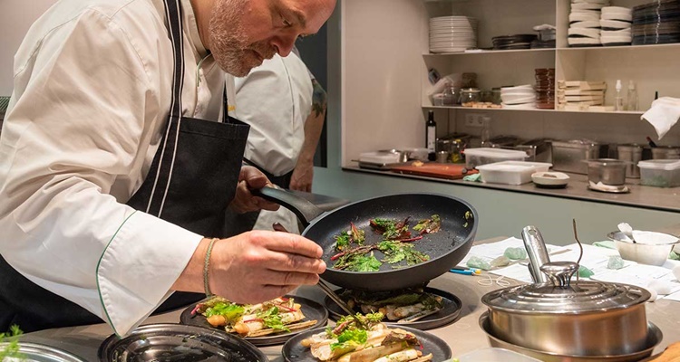 Xavier Pellicer es un cocinero de larga y brillante trayectoria, y su nuevo restaurante ofrece platos como el celerí masala con dátiles, el tajín de puerro con ajo negro o también el puré de coliflor con huevo a baja temperatura.