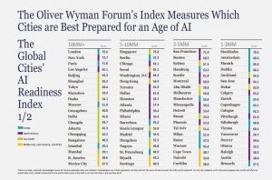 Un índice elaborado por la consultora Oliver Wyman indica que tan solo Madrid y Barcelona estarían listas para hacer frente a los futuros desafíos que se presentarían a causa del desarrollo de la Inteligencia Artificial (IA), quedando el resto de ciudades españolas fuera del ranking.