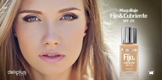 Este maquillaje cubriente y fijo es de la marca Deliplus (Mercadona). Es un cosmético que merece mucho la pena adquirir por sus excelentes resultados.