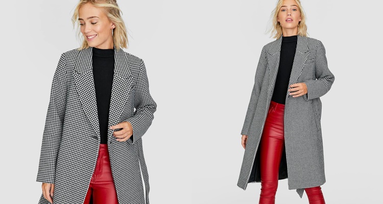 Otro abrigo muy original de Stradivarius es este diseño con el clásico estampado pata de gallo. Una tendencia que se renueva y se vuelve más actual llevándola con cinturón.