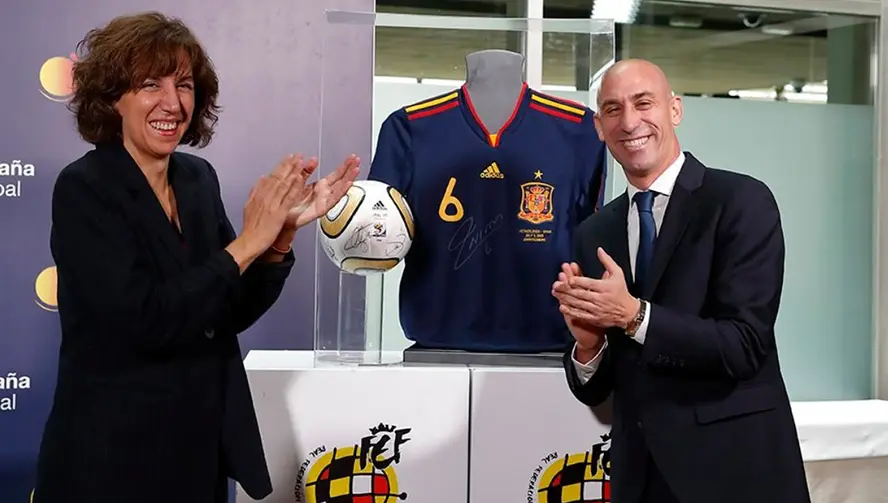 El acto se ha sellado además con la cesión, por parte de la Federación, de una pieza histórica del fútbol español: la camiseta con la que Andrés Iniesta dio a España su primer mundial reposará ahora en el museo de la España Global.