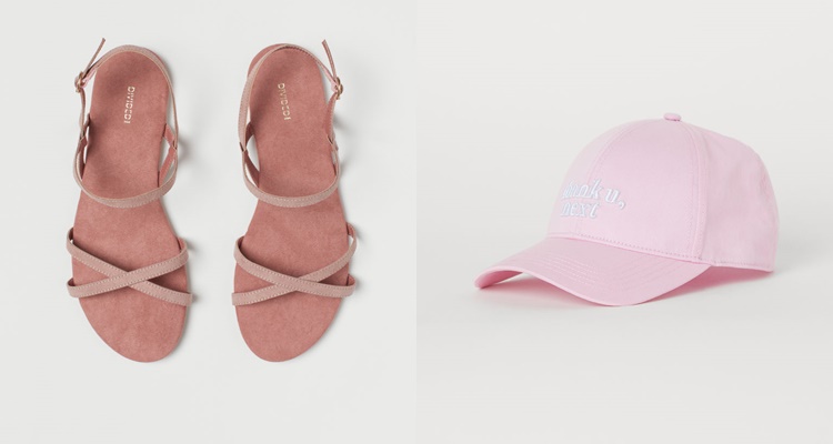 Estas sandalias de tiras de H&M por 9,99 euros combinan bien con todos los looks de verano y con casi cualquier color. Y para protegernos del sol, nada mejor que esta gorra rosa de la colección de Ariana Grande para H&M Thank U Next.