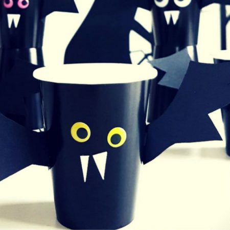 Siguiendo con este recopilatorio de las mejores manualidades que puedes hacer en Halloween, tenemos estos vasos con forma de murciélago.