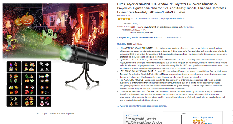 Si creías que la fiesta low cost de Halloween que estamos montando no podía ir mejor, pues te equivocabas. Con este proyector LED, podrás mostrar de una forma fácil, algunas imágenes clarar y brillantes de Halloween, para dar un toque más terrorífico a la fiesta.