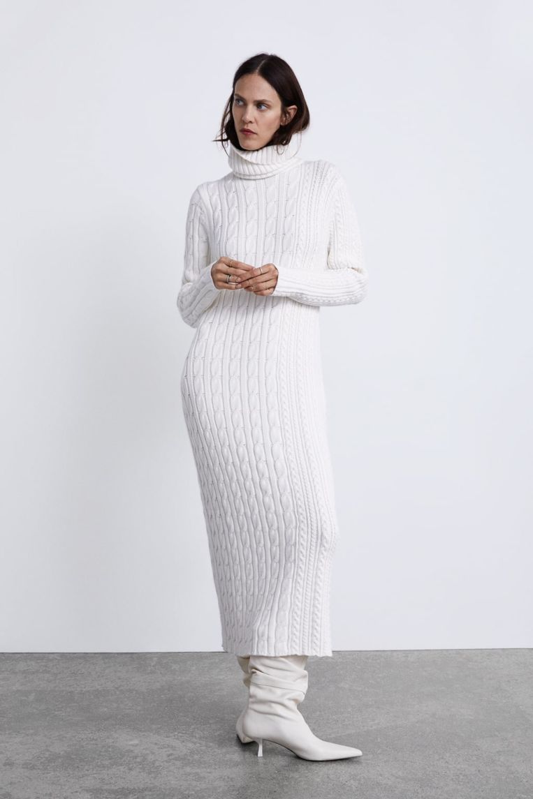 Los vestidos de punto son una de las tendencias más fuertes de la temporada ya que cada marca tiene el suyo. En el caso de Zara, tenemos este vestido ajustado de punto con cuello subido acabado en rib y manga larga. Lo encontramos en color crudo y es, sin duda, una de las mejores opciones para el día a día o para esos momentos en los que te apetece llevar un vestido pero ir un poco más informal.