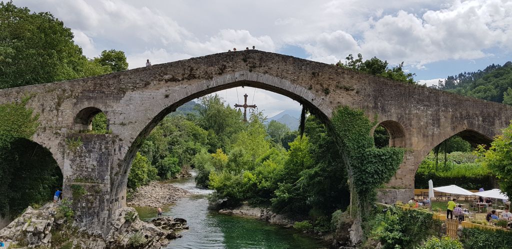 También tiene otro punto muy visitado, y es el conocido puente romano, con la cruz de la Victoria colgante sobre el río Sella (donde realizan el famoso descenso).