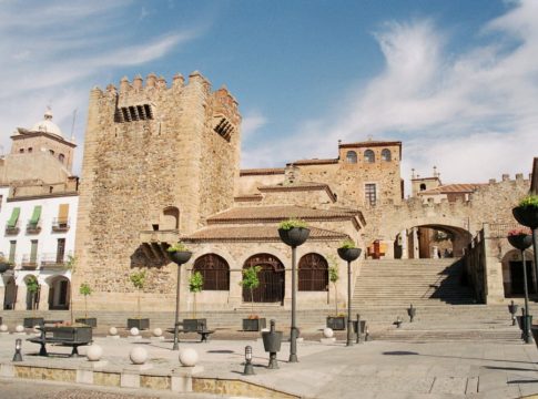 - Puedes ver la Plaza Mayor de Cáceres. Dentro de ella puedes acceder de forma gratuita al Arco de la Estrella, Ayuntamiento, Torre de la Hierba, el Foro de los Baldos, y pagando a la Torre de Bujaco.