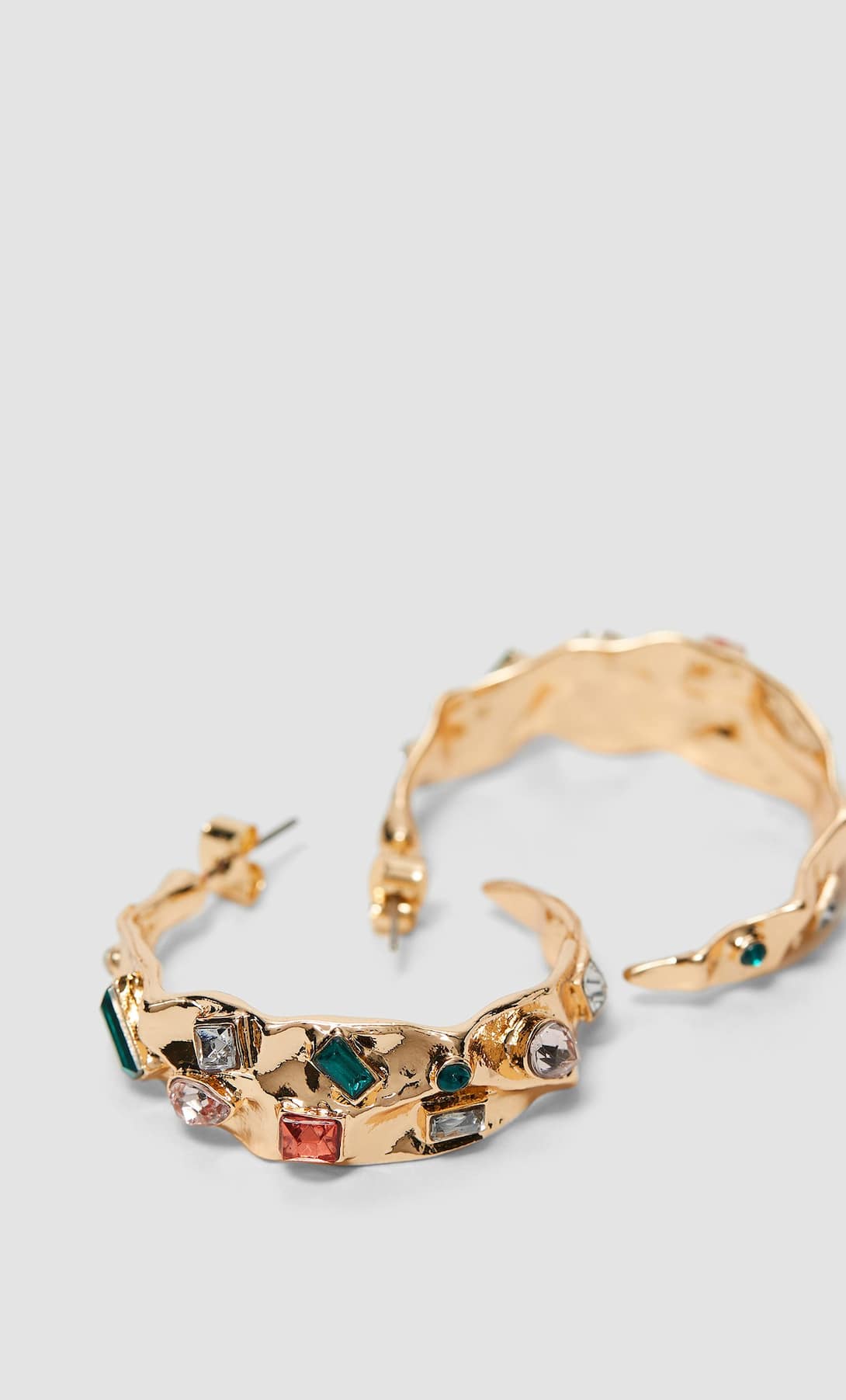 En Stradivarius encontramos estos aros joya de color dorado perfectos para cualquier ocasión más formal. Las piedras que tienen incrustadas hacen que sean perfectos para las fechas señaladas que vienen en el próximo mes. Desde Nochevieja hasta el Día de Reyes. A nosotros nos encantan estos pendientes.