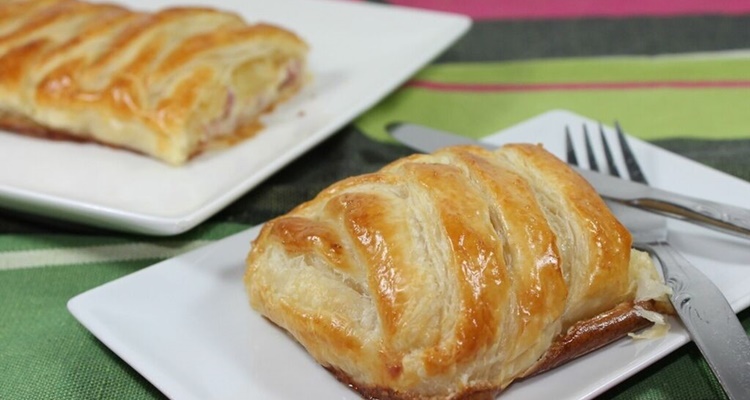 Trituramos los huevos cocidos y el atún durante unos cinco segundos. Estiramos el hojaldre y dividimos la masa en tres partes. Cubrimos el centro de la masa con el relleno de verduras huevos y atún. Después cerramos las tiras y las pintamos con huevo batido. Ya solo hay que hornear el hojaldre durante 30 minutos a 200° en el horno.