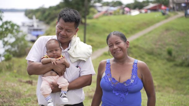 “Yo estaba bien preocupada, nos cuenta Llezmín con su bebé en brazos. “Gracias a Dios teníamos la tecnología y pudimos comunicarnos mucho más rápido. Me evacuaron en avioneta al hospital de Iquitos y pude tener allá a mi bebé. Estoy muy agradecida a la tecnología”.