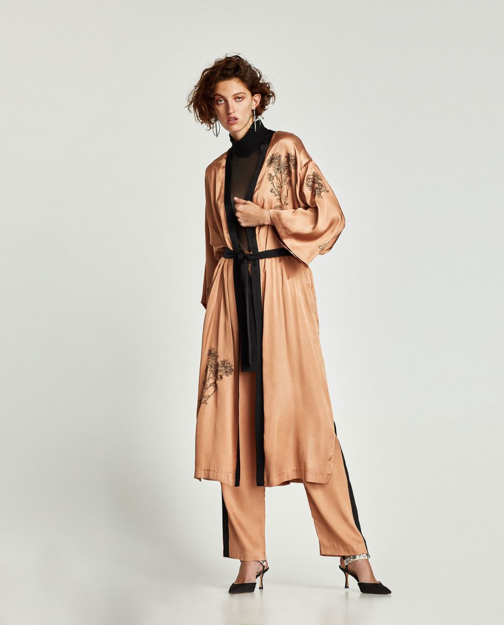 Hasta que alguien dice: a que no hay huevos de crear un pijama para salir a la calle. Y claro, el más chulo de todos decidió confeccionar este kimono largo en color nude, que es una verdadera preciosidad.