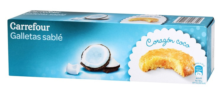 Si no las encuentras en Mercadona, puedes ir a Carrefour donde las tienes muy parecidas. Son unas galletas de mantequilla con coco rallado que están deliciosas, pero son bastante calóricas.