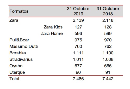 En los nueve primeros meses de 2019 Inditex ha abierto tiendas en 41 mercados. Al cierre del periodo Inditex operaba 7.486 tiendas en 96 mercados. Así, el grupo terminó el tercer trimestre con 66 tiendas más que en el trimestre anterior, al producirse la concentración de aperturas y reformas en la segunda parte del año, alcanzando las 7.486 tiendas y “manteniendo el incremento del espacio comercial en línea con lo previsto”, según la compañía.