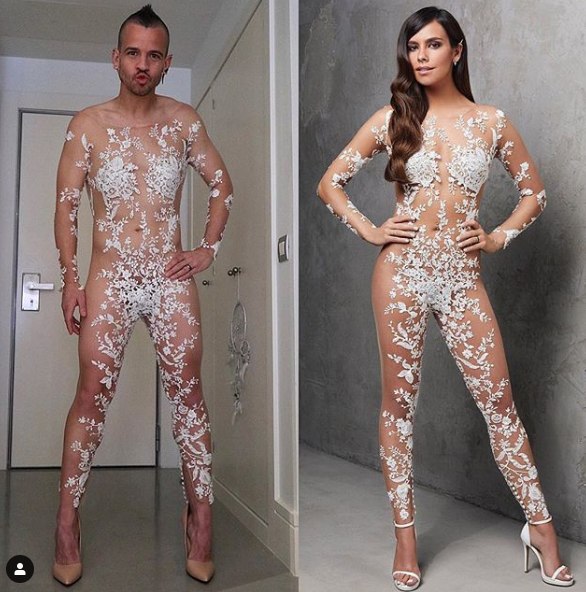 5David Muñoz se pone el vestido de la Pedroche
