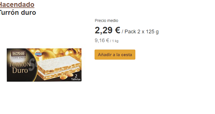 En Mercadona, tenemos turrón duro por 2,29 euros, en un pack de dos tabletas de 125 gramos cada una. Sale a 9,16 euros el kilo y sin duda, es uno de los turrones que más me gustan. Por este motivo, este año, el turrón alicantino no faltará en mi bandeja.
