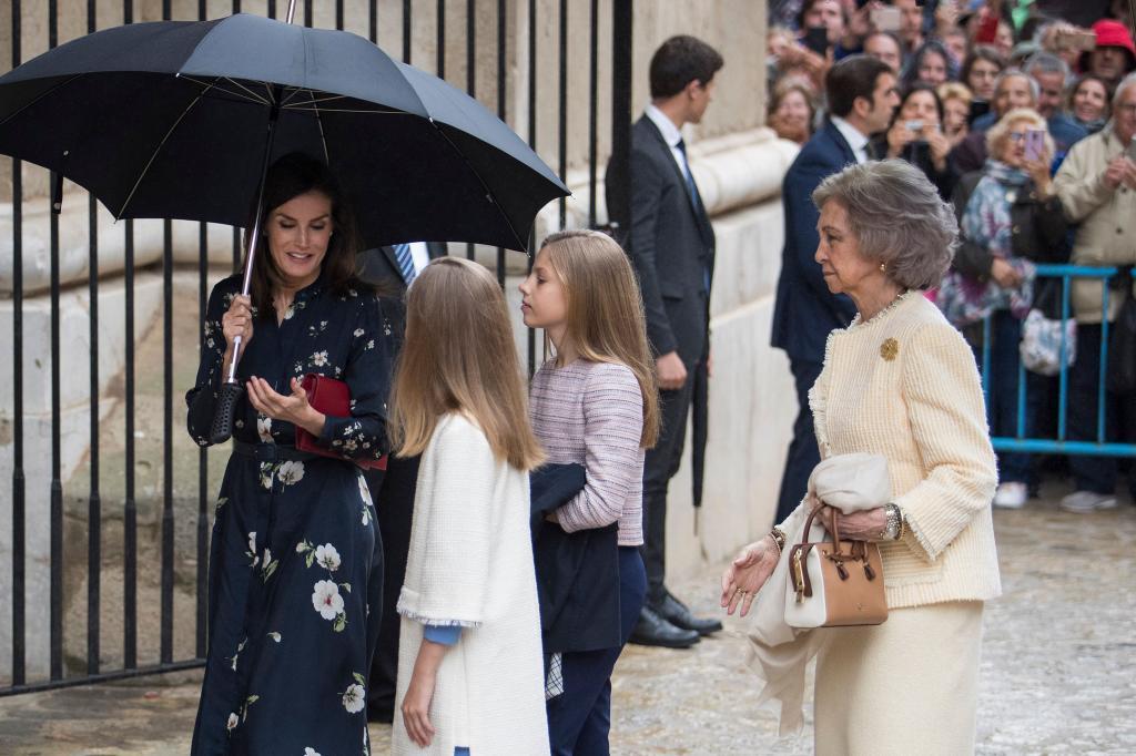 ¿Pondrá Letizia buena cara en la intimidad a su suegra? Sea como sea, ha querido dejarla en evidencia delante de todo el mundo. Y lo ha conseguido. Aquí podemos ver a Doña Sofía ‘mendigando’ un poco de atención por parte de sus nietas y de la mujer de su hijo. Una pena ver a la Casa Real tan separada.