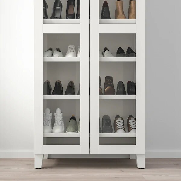 Para empezar, cuenta con unas puertas con cristal. De esta manera, podrás tener todos tus zapatos protegidos del polvo, sin molestar con malos olores (nada mejor que un pequeño ambientador dentro de este zapatero), además de poder ver los zapatos que tienes dentro sin tener que abrir las puertas.