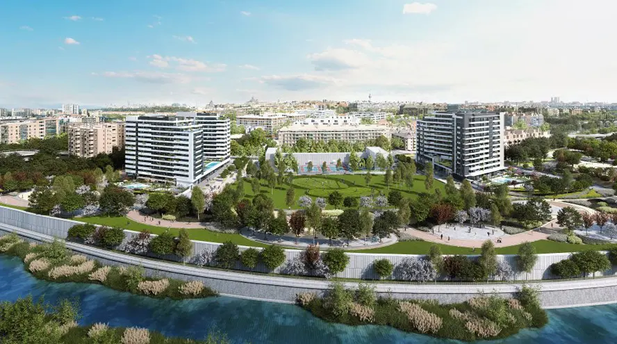 Mes y medio después, la gestora de inversiones Azora, el fondo CBRE GI y Gestilar han lanzado al mercado la primera promoción residencial del entorno Calderón-Mahou. River Park es un conjunto de 223 pisos de obra nueva en Madrid Río distribuidos en 1, 2, 3 y 4 dormitorios.