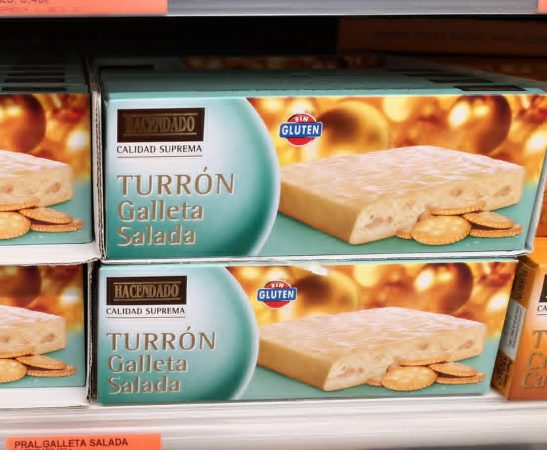 En las estanterías se puede encontrar los panettones y los turrones. Hay 30 tipos de turrón y se pueden comprar en tienda o de forma online. Entre los sabores se encuentran el guirlache, la crema catalana, el Jijona, la yema tostada, los alicantinos y el chocolate. No hay que olvidar la compra de clásico turrón de cacahuete blando y pistachos a partir de un euro.