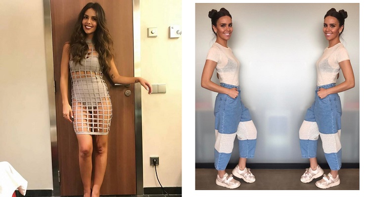 La presentadora ha lucido otros looks algo polémicos que han despertado amor y odio a partes iguales. Aquí, lleva un vestido de diseño entramado hecho por House of CB, donde luce su cuerpo sin esconder absolutamente nada. En el otro lado de la imagen se puede ver un look arriesgado, donde lleva unos pantalones vaqueros bastante anchos, con crochet en la rodilla y una camiseta con transparencias.