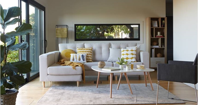 Si elegimos un sofá de tonos neutros y claros como éste, podemos transformarlo completamente cambiando los cojines. También podemos jugar con el color según la época del año o lo que más nos apetezca.