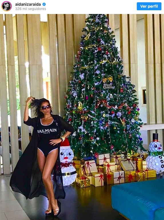 Ya sabemos que la palabra vergüenza no entra en el vocabulario de Aida Nizar. Es por eso por lo que la colaboradora de televisión ha posado de esta guisa junto al árbol. No sabemos realmente por qué está en bañador, pero lo que sí sabemos es que es una postal muy original para todos sus seguidores.
