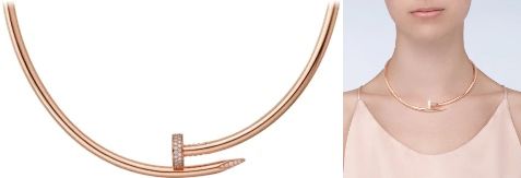 El collar Juste un Clou se trata de un clavo hecho joya. Es un bonito collar pequeño con 65 diamantes de talla de brillantes. El primero que se hizo con estas características fue un brazalete clavo en el año 70.