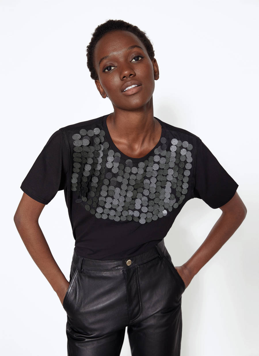 ¿Trabajas en un sitio donde la calefacción está a toda pastilla? Nada mejor que esta camiseta de lentejuelas disponible en la conocida firma de moda con sede en Tordera.