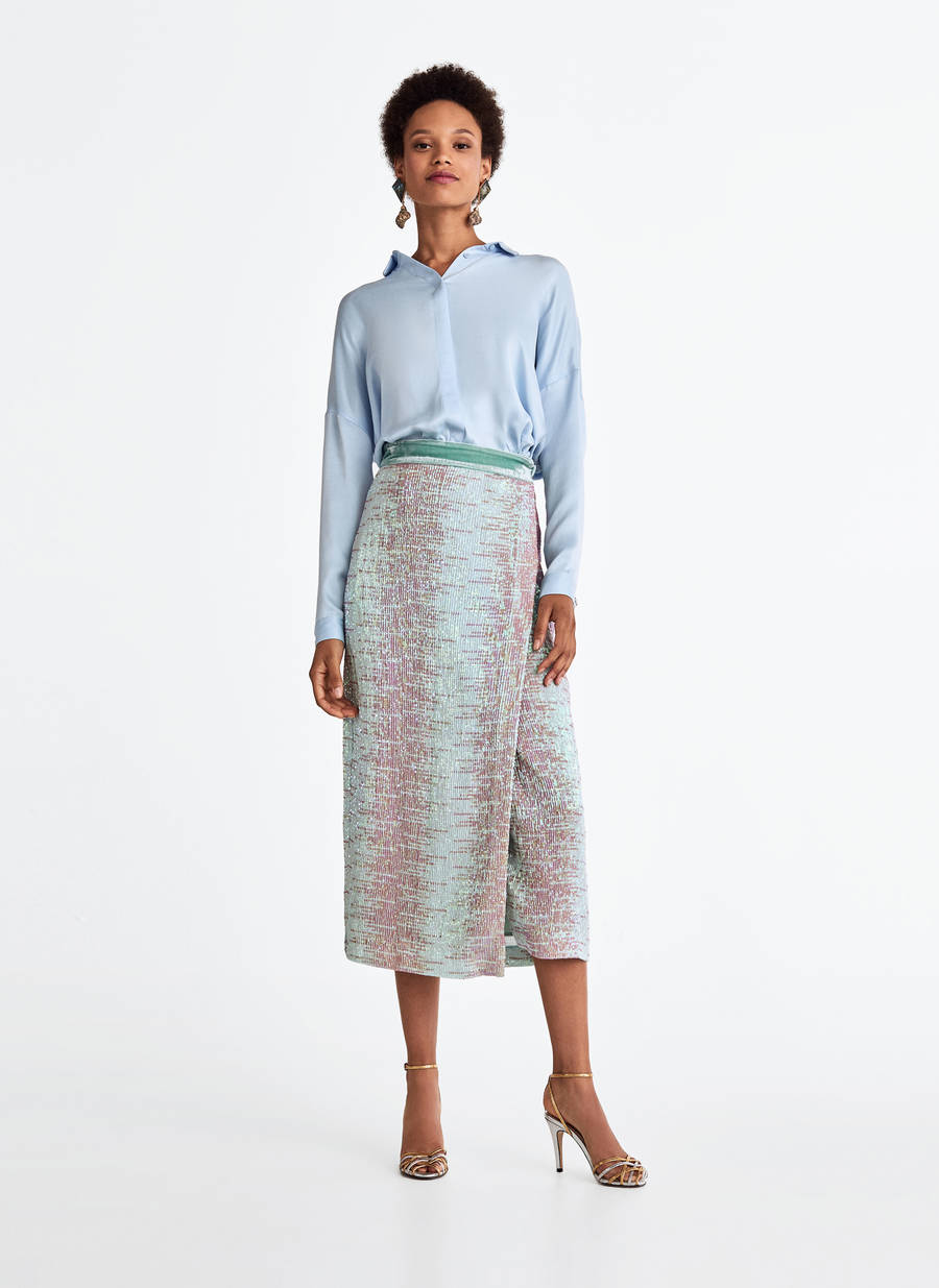 Y es que, esta falda confeccionada en un tejido fluido y con estilo midi y apertura lateral, será el centro de todas las miradas.
