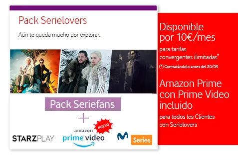Vodafone tiene otro tipo de ofertas para los adictos a las series en la que están todos los canales del paquete Seriefans y además también incluyen las series de Starzplay y todas las que ofrece Movistar televisión.