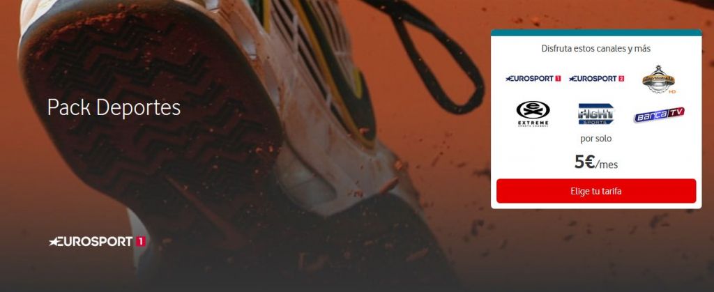 Vodafone tiene un pack especial para los amantes de los deportes. En este podrás ver desde campeonatos de rallies, aventuras de riesgo, competiciones de tenis, skate, surf y todos los deportes del mundo que quieras ver.