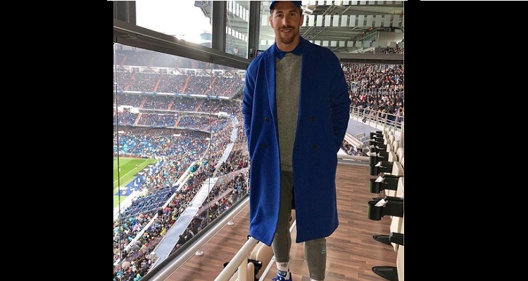 Todos recordamos el abrigo azul de Sergio Ramos que llevó no hace demasiado tiempo. Este look es azul y está combinado con un jersey gris, además de una gorra y un polo del mismo color que el abrigo.