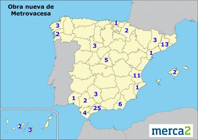 Metrovacesa tiene en cartera un total de 94 promociones de obra nueva distribuidas por la geografía española. El 67% de ellas están ubicadas en una provincia de la costa mediterránea y solo cinco en Madrid.
