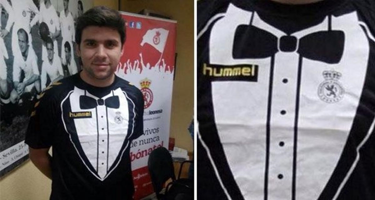 Otra de las camisetas aún más llamativas, y que revolucionó también las redes sociales, es la del club de fútbol de la Cultural Leonesa. En este caso, la camiseta quería asemejarse a un esmoquin, con pajarita y camisa.
