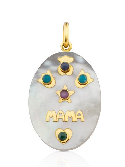 ¿Buscas un regalo para sorprender a tu mamá? Pues en Tous tienes este colgante que seguro que le encanta y que llevará siempre puesto. Este colgante de oro amarillo de 18 kt y nácar con sodalita, turquesa, malaquita y rubí, es perfecto para cualquier ocasión. Es cierto que aún nos quedan algunos meses para el día de la madre pero, ¿Por qué tiene que ser un día especial para regalar a tu madre?
