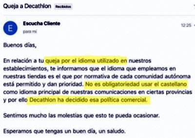 3«No estamos obligados a usar el español», la respuesta de Decathlon