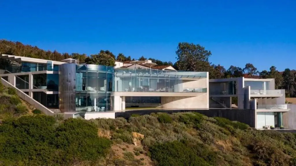 Para celebrar su gran éxito, Burns compró la Razor House por 14.1 millones de euros en 2011 y se dedicó a reformarla durante tres años. Hablamos de una propiedad que se extiende por 3.120 m2. su mansión principal está construida en acero, vidrio, mármol travertino y nogal, además de contar con cuatro dormitorios, sala de estar circular, sala familiar, un cine, sala de billar diseñada por Ralph Lauren, además de dos cocinas y una piscina infinita en el exterior junto a un spa, una cocina exterior y una terraza en la azotea junto a un garaje impresionante.