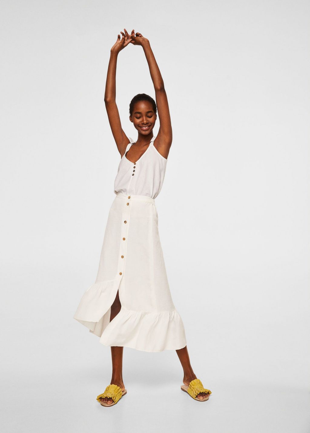 Pasamos de la falda de flecos a un modelo con volantes que te hará disfrutar de un estilo ibicenco realmente agradable. Realmente hablamos de un vestido, cuya falda es la gran protagonista de la fiesta. Y es que, con esta prenda disponible en Oysho, vas a poder presumir de un aspecto de escándalo, y que será la envidia de todas tus amigas.