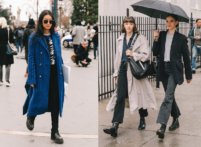 Otra de las combinaciones que más se vieron en la semana de la moda de Londres, fue el uso de botas militares con pantalones tejanos de todo tipo.