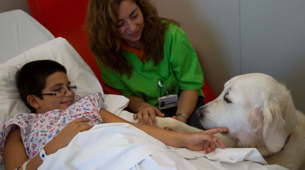 En Esplugues de Llobregat, el hospital de Sant Joan de Déu, cuentan con varios canes que han sido entrenados de forma especial para ayudar a los pacientes durante su recuperación. Al ser el entorno hospitalario, la compañía de los perros puede contribuir a mejorar el impacto que esto pueda producir.