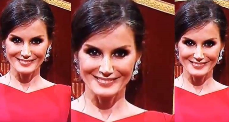 Fue entonces cuando éstas enfocaron a los miembros de la Casa Real Real uno a uno… hasta que llegó el turno de ella, y ésta hace una sonrisa muy forzada durante los segundos que dura la imagen. Como todo, los usuarios de las redes sociales fueron los primeros en descubrir y compartir esta icónica (y más tarde viral) imagen de Letizia.