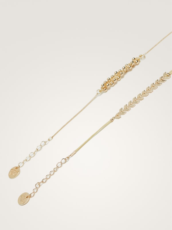 Se tratan de do pulsera, cada una con un diseño diferente. Una de ellas está adornada con bolitas doradas, y la otra, con flechas. Resulta de lo más adorable, y su cierre con mosquetón te asegurará que no la perderá durante un día de recreo con sus amistades.
