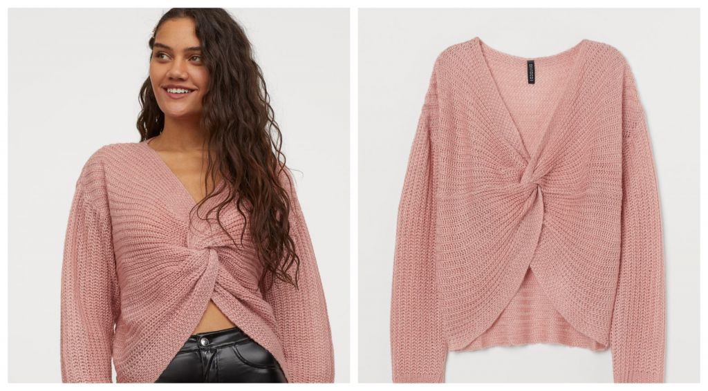 Otra de las apuestas fuertes de la temporada para el entretiempo que viene, es este jersey cruzado de H&M. Al igual que sucede con el top de Zara, el cruce en la parte frontal del cuerpo ayuda a crear la ilusión de que reduce hasta una talla.