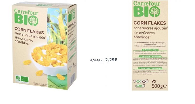 Finalmente, hablaremos de los cereales sin azúcares añadidos ecológicos Corn Flakes Carrefour Bio. Los corn flakes también son un clásico para desayunar, aunque muchas personas habían dejado de tomarlos por el miedo al azúcar añadido y a la agricultura más industrial.