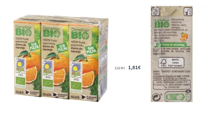 El zumo de naranja ecológico de Carrefour Bio forma parte de su fama de bebidas ecológicas. Este tipo de zumo forma parte del desayuno de muchos españoles, los cuales están cada vez más hartos del zumo industrial y no tienen tiempo de exprimirlo ellos mismos.