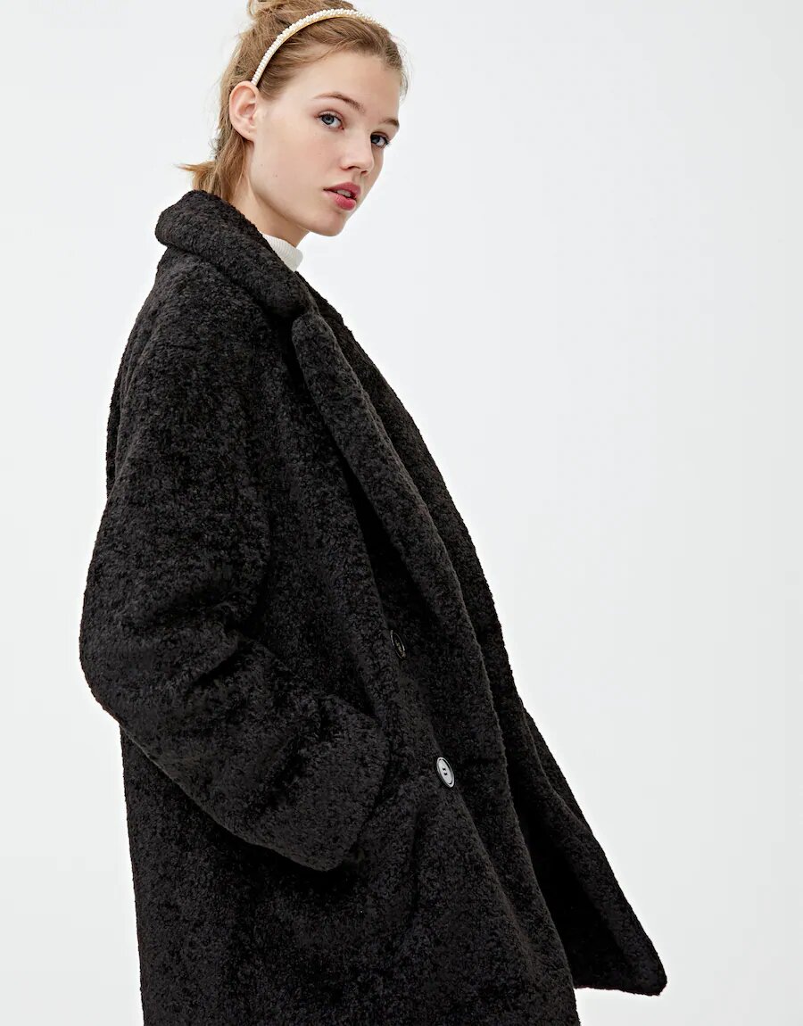 Para finalizar con este recopilatorio de las mejores chaquetas y abrigos de Pull & Bear para esquivar el frío, nada como este modelo estilo borreguillo y con cierre cruzado de cuatro botones.