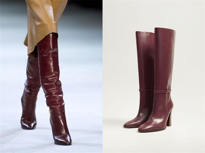 Otro de los complementos que más llamaron la atención en la popular tienda de Mango fueron este clon inspiradísimo en Celine. Se trata de unas botas en color vino que se parecen (y mucho) a las originales.